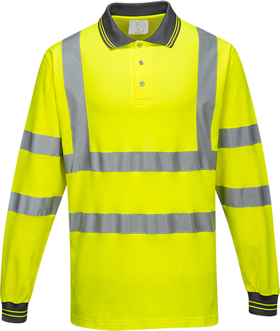 Polo à manches longues jaune S271 - coton majoritaire - bandes réfléchissantes - taille XL