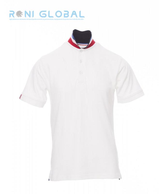 Polo de travail homme manches courtes en coton - NATION PAYPER - col contrasté et détails drapeau