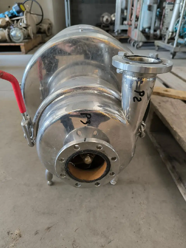 Pompe INOXPA - PAC 15 kW - Type: S38 - N°: 31.157.08C - Modèle: Centrifuge - Pression : 2 bar - Moteur: 15 kW - 2935 t/min - Diamètre Turbine: 260 - Diamètre Entrée: 104 - Diamètre Sortie: 76 - Caractéristiques techniques - Puissance moteur : 15 KW - 2935 TR/MN - Longueur :&