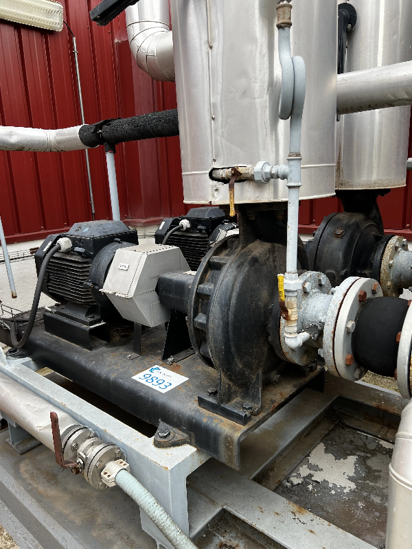 Pompe centrifuge fabriquée par GRUNDFOS, modèle NK 100 - 315/285/BQQE avec un débit - Caractéristiques techniques - Modèle : NK 100 - 315/285/BQQE - Moteur de la machine : 15 kW - 1465 rpm kW - Hauteur manométrique : 25 m - Pression maximale : 16 bar - Température maximale : 140 °C -