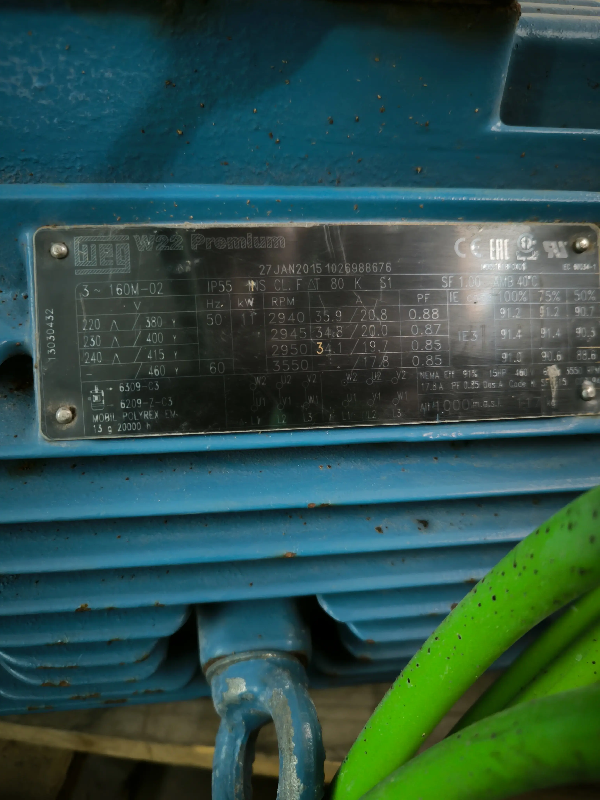Pompe centrifuge multicellulaire verticale fabriquée par EBARA, modèle EVMSG15, d'une puissance de 11 kW à 2900 tr/min.