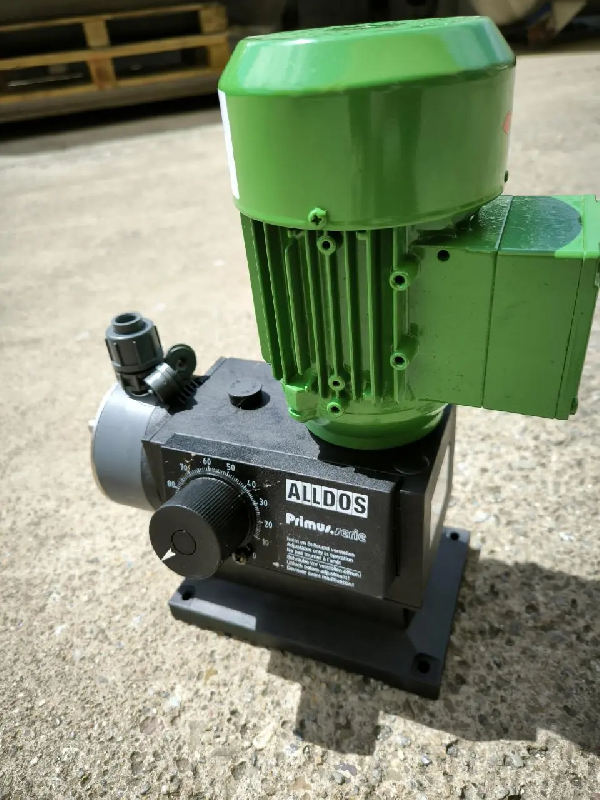 Pompe doseuse d'occasion fabriquée par ALLDOS PRIMUS modèle 221, d'une puissance de 0,09 kW, d'un débit de 27 l/h et d'une pression de 10 bar.