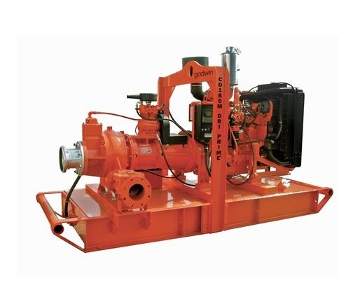 - La pompe CD180M Dri-Prime de Godwin peut atteindre un débit de 2 100 US GPM (476 m³/h) et permet d’évacuer des fluides contenant des matières solides jusqu’à 3,0 po (75 mm) de diamètre.