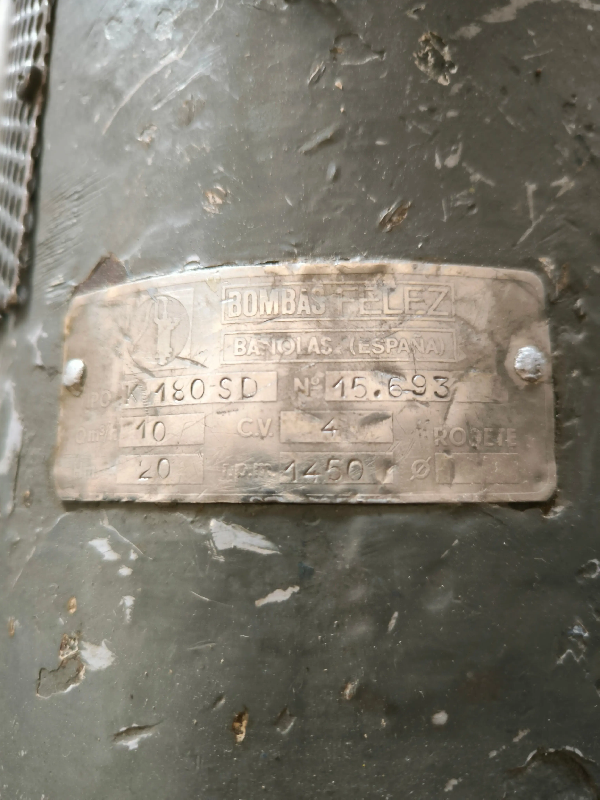 Mono pompe d'occasion fabriquée par BOMBAS FELEZ d'une puissance de 4 CV et d'une vitesse de rotation de 1450 tr/min