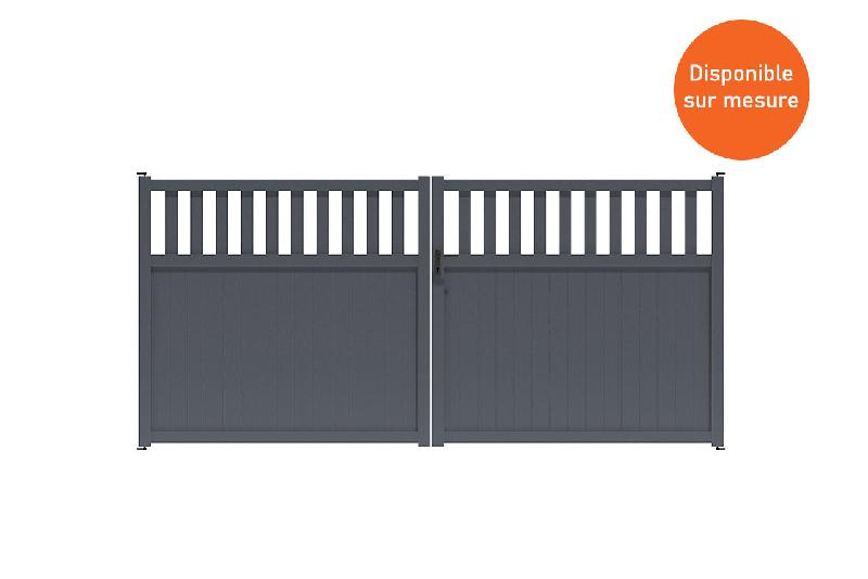Télécharger la NoticeLe portail battant semi plein est un classique de notre gamme. Solide et occultant, il protègera idéalement le jardin de votre maison traditionnelle ou contemporaine. Ce modèle est disponible en portillon afin d'être assorti à votre entrée.Sa conception pleine lui permet de protéger des regards indiscrets tout en gardant un style léger avec sa partie haute barreaudée. Ce portail est un juste milieu entre les modèles barreaudé et plein. Livré avec :Le portail battant semi plein est livré prêt à monter, le kit de montage se compose d'un sabot de sol en Polyamide, de quatre gonds multi réglables pour fixer les deux battants. Avec l'option manuelle, deux poignées avec caches aluminium, une serrure à canon européen et trois clés sont ajoutés dans le kit.Avec l'option motorisable, il n'y pas de système d'ouverture manuel. La traverse inférieur est renforcée afin de pouvoir accueillir un moteur. Descriptif technique :