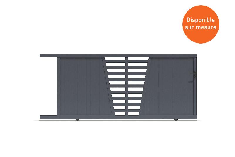 Le Portail Coulissant Anaïs, fait d'aluminium et personnalisable en dimension est à disposition en version manuelle ou automatique (Nice, Somfy IO / RTS Solaire). Il peut atteindre une largeur maximale de 5970 mm et une hauteur maximale de 2000 mm. Fourni avec des montants consolidés (structure p