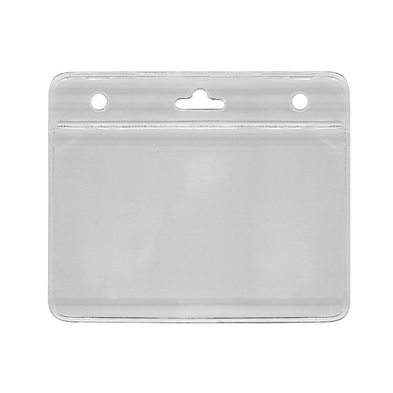 Porte badge horizontal - Nombre de carte : 1 - Modèle : Horizontal - Clips latéraux anti - perte de badge - Format carte : 86x54 mm - Epaisseur carte : 0,76 mm - Protection : 2 faces - Matière : Polycarbonate - face avant : polycarbonate cristal - face arrière : polycarbonate cristal -