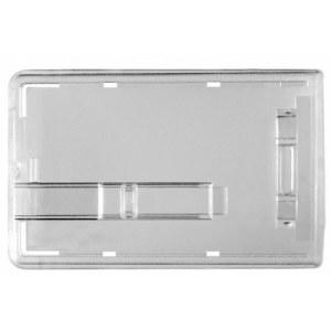 Porte - badge 2 cartes poussoir extraction - horizontal - Porte - badge rigide transparent en polycarbonate clair avec poussoir glissière pour extraction du badge. - Pour 2 badge, une face de chaque badge visible. - Ce porte badge est idéal pour les badge avec puce contact ou piste magnétique