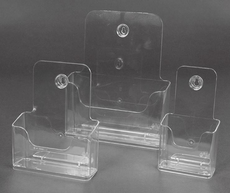 Présentoir à suspendre avec réserve - Porte - brochure mural transparent pour classement ou présentation de documents : - En PS cristal transparent de 2 mm. - Muni de trous au dos pour faciliter la fixation au mur. - Fond rainuré pour un bon maintien des feuilles. - Peut également être c