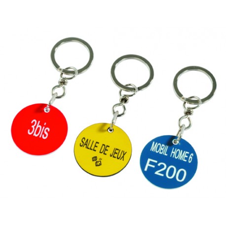 Porte - clés personnalisé en altuglass de diamètre 70 mm, épaisseur 10mm pour un poids de 100 gr forme rectangle avec coins arrondis pour un modèle imposant Marquage interne par gravure recto et verso sans supplément de prix dans une large gamme de coloris standard Altuglass teinté d'un bel a