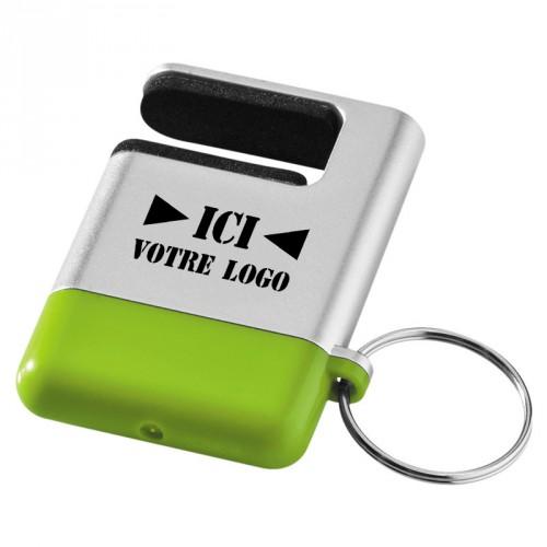 Porte-clés multifonctions qui comprend un nettoyeur d’écran sous le capuchon coloré et permet également de maintenir votre smartphone grâce à l’espace prévu à cet effet.