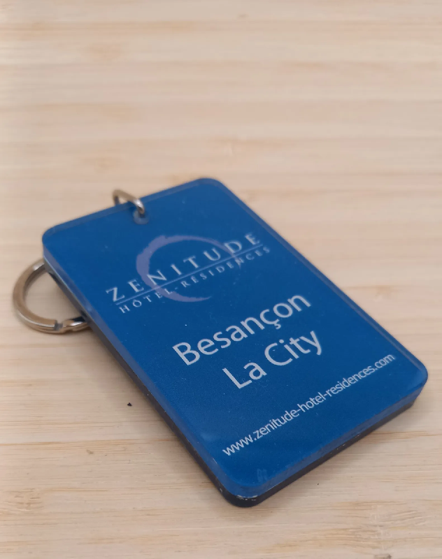 Le RECTANGLE est un modèle de porte-clés rectangulaire grand format, épais et solide, conçu pour durer. Sa surface large permet une personnalisation claire et visible : numéro, logo ou texte. Avec son allure imposante et son option braille, il s'adapte parfaitement aux hôtels et établissements qui recherchent robustesse et accessibilité.