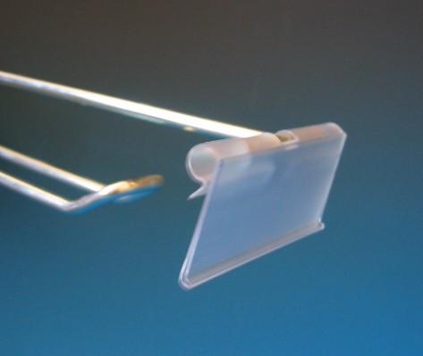 Porte étiquette plastique transparent. Dimensions 8x21cm. - Grâce à son système de pinces, ce porte étiquette est idéal pour mettre en avant certaines informations dans vos linéaires. Il se fixe sur vos corbeilles, cagettes, mannes, et pivote afin de présenter au mieux votre information. -