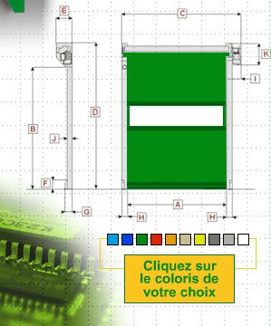 Porte rapide E.R.B. - souple, à enroulement, en plastique, acier laqué ou inox 316 L