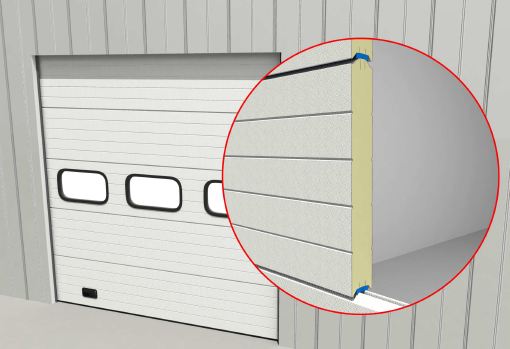 La porte PowerDoor 601 est entièrement étanchée sur toutes ses surfaces et empêche la pénétration de pluie, courant d’air, sable et autres particules. La forme du joint entre panneaux, de construction à languettes et à rainures ainsi que le joint en ruban adhésif synthétique à noyau fermer assure une étanchéité optimale entre les panneaux. Latéralement, un joint caoutchouc est fixé aux rails verticaux. Un joint double en caoutchouc monté sous le profilé aluminium inférieur de la porte ainsi qu’un joint lèvre sur la partie supérieure de la porte assure l’étanchéité basse et haute. L’ensemble de ces joints contribue une étanchéité optimale, ce qui permet à l’utilisateur de réaliser des économies d’énergie et de donner de meilleures conditions de travail.