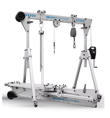 La gamme de portiques mobiles et légers en alliage aluminium PORTA GANTRY apporte une nouvelle dimension au marché professionnel du levage. Ses qualités - légèreté, facilité de déplacement, un assemblage manuel sûr, rigidité de l'ensemble, résistance à la corrosion - offrent à ces port