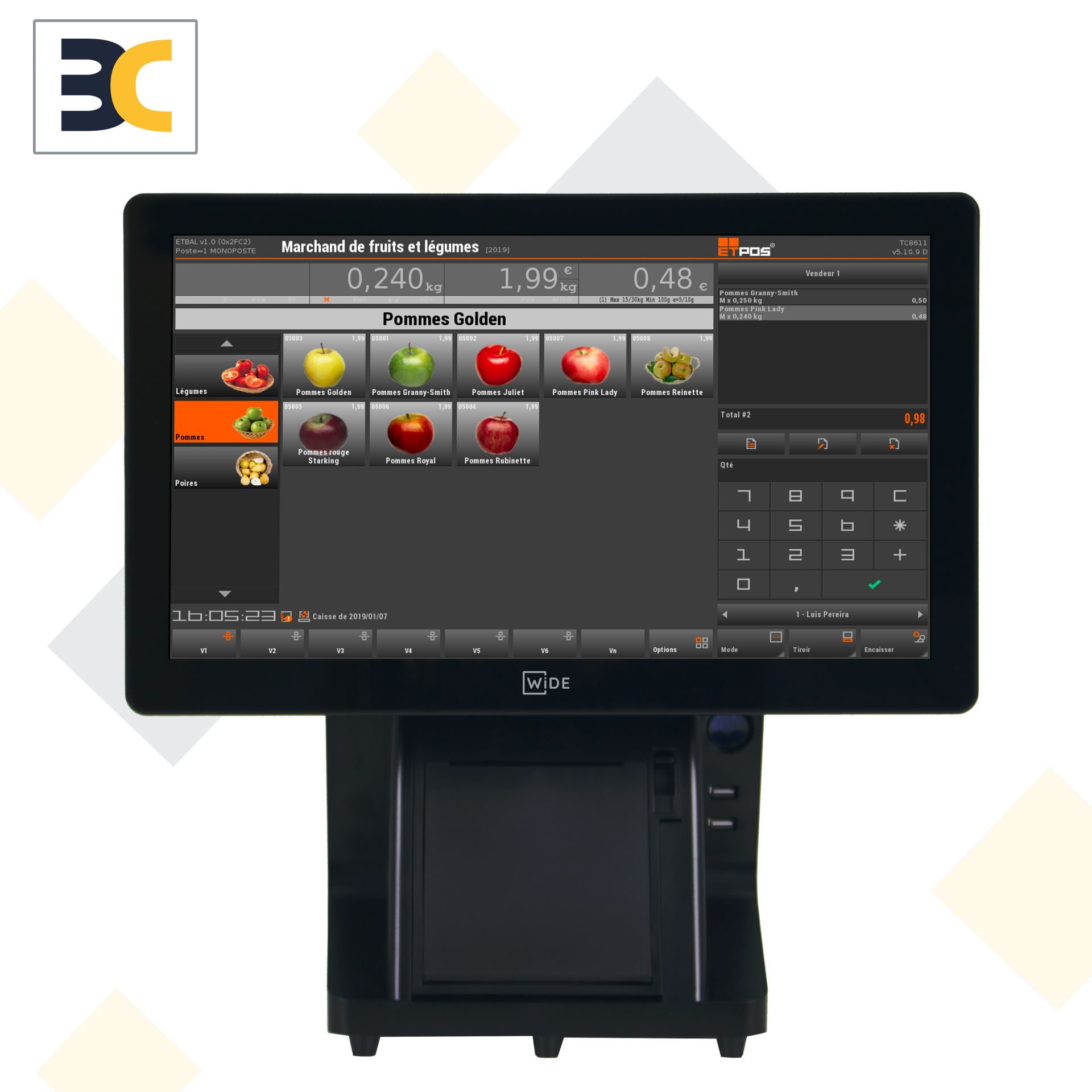 En solo ou associée aux balances MARQUES, la BM400 est la caisse tactile idéale pour les milieux exigeants. - Elle est livrée avec le logiciel de caisse ETPOS certifié fiscalité 2018. Composez avec BM400, la meilleure organisation possible pour votre magasin. - Boîtier : En inox - Écran :