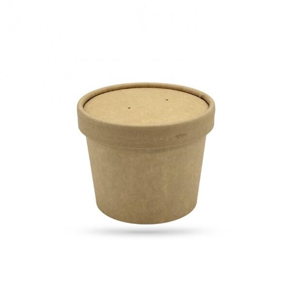 Pot à soupe kraft brun avec couvercle, idéal pour la vente à emporter et les portions généreuses. Sa contenance 340 ml convient aux soupes, plats chauds, salades, desserts et préparations snacking.