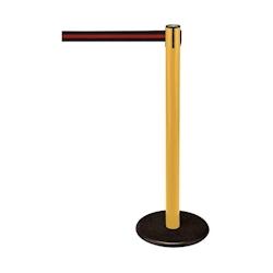 Partie supérieure avec 3 raccords de sangle. Couleur de poteau : anthracite, rouge, jaune, noir ou blanc: - Matériaux film rigide - Matière pied Fonte avec couvercle en plastique noir - Diamètre du poteau 65 mm - Couleur poteau jaune - Extension de sangle 4 000 mm - Largeur sangle 5 cm -