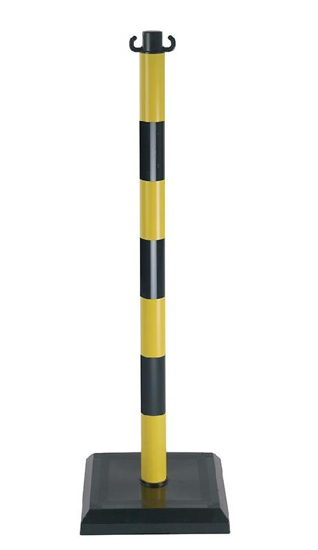 3460009 - Poteau PVC Jaune/Noir avec double crochets à mi - hauteur sur socle à lester 4 kg