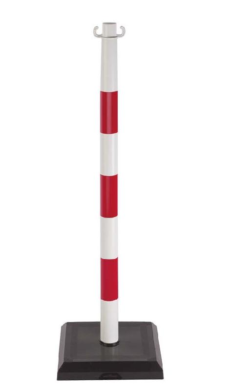 3460008 - Poteau PVC Rouge/Blanc avec double crochets à mi - hauteur sur socle à lester 4 kg