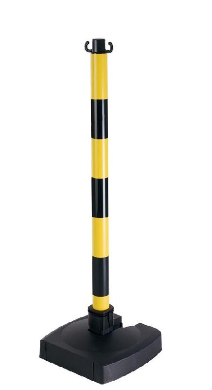 3460009 - Poteau PVC Jaune/Noir avec double crochets à mi - hauteur sur socle à lester 4 kg