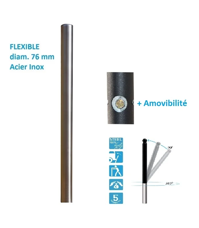 Potelet bombé en INOX ø 76 "anti-chocs" AUGUSTAFLEX avec amovibilité