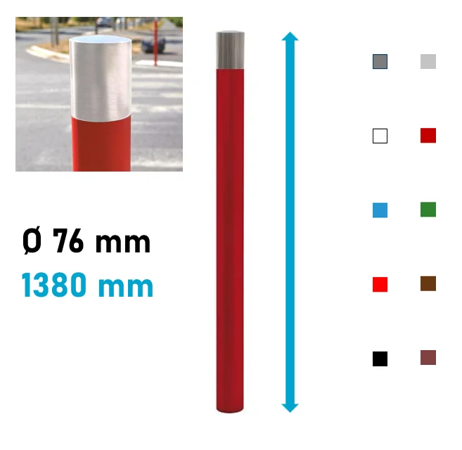 Ce potelet haute visibilité Province au pommeau Boule est disponible en Ø 76 ou Ø 114mm. Choisissez le coloris du fût selon notre palette de couleurs disponible, le pommeau restant toujours blanc afin de répondre aux différentes exigences demandées. Le contraste des couleurs et les dimensions