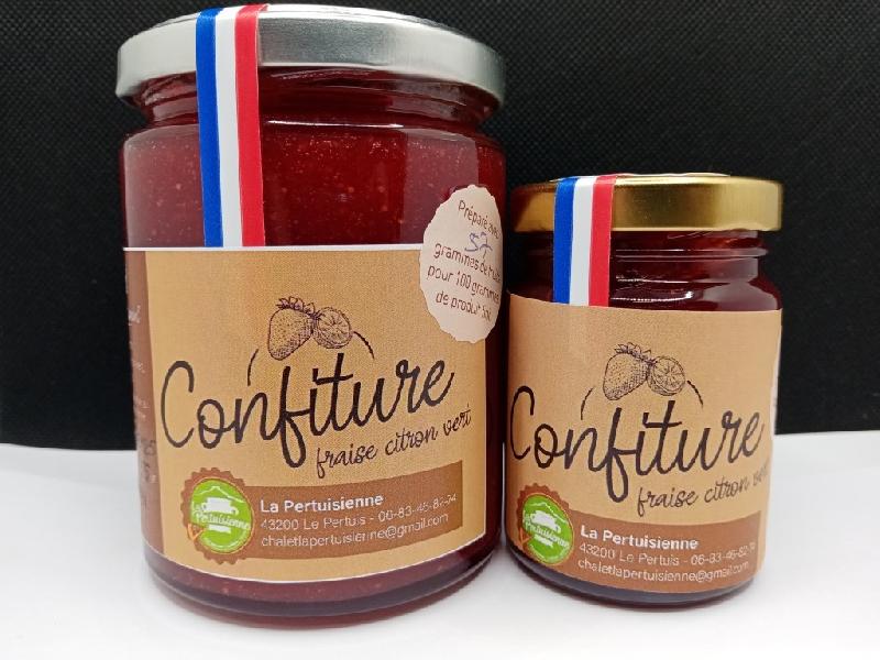 ConfitureFabriquée maison en France Idéal pour tous les établissements recevant et/ou hébergeant du public souhaitant des produits de qualité Confectionnés à partir de fruits de saison Contenance : 350 grParfum :Fraise façon Grand Mère (avec des morceaux de fruits)Fraise vanille bourbon de