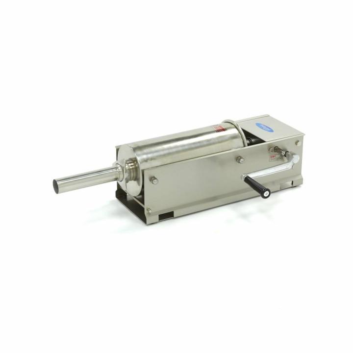 Poussoir à saucisse manuel 7 L horizontal - Caractéristiques principales : - Manuel, parfaitement adapté à l'usage professionnel. - Idéal pour les épiceries fines et boucheries. - Hydrofuge et résistant aux tâches de sang, de graisse et d'huile. - Capacité maximale : 7 litres. - Anti
