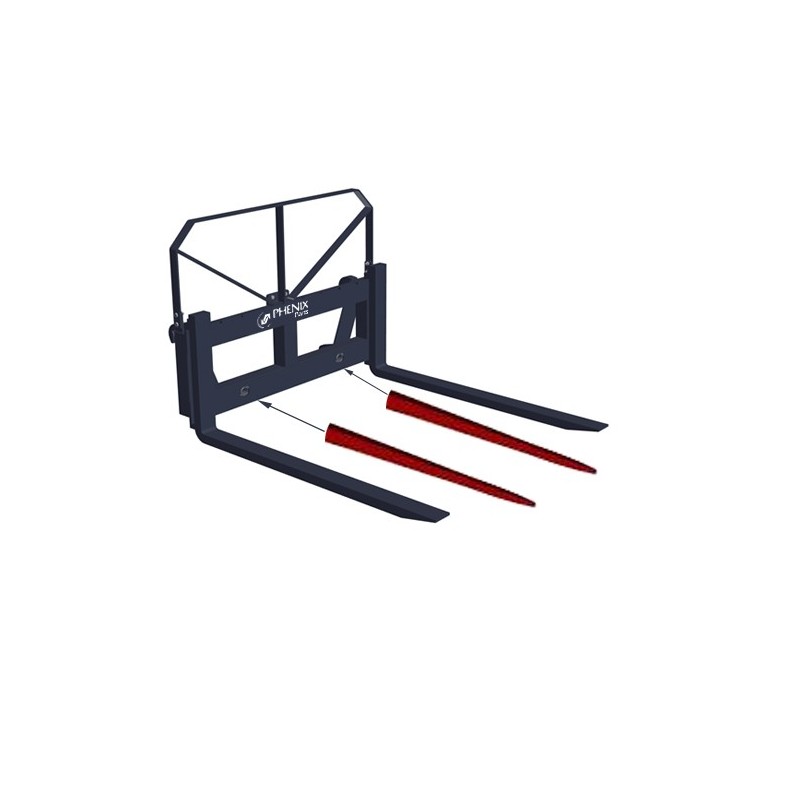 Pour chargeurs télescopiques ou chargeurs Euro - Équipé de 2 dents Ø 45 - 1160 mm de long - Possibilité de mettre une troisième dent - Écartement des dents 1,12 m - Caractéristiques techniques - Largeur entre dents 1,12 m - Possibilité de rajouter une 3e dent - Diamètre des dents 4