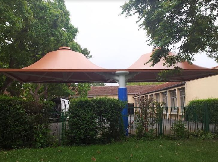 Préau en toile pour crèche sur un poteau 53m2 - QUINTOBELL