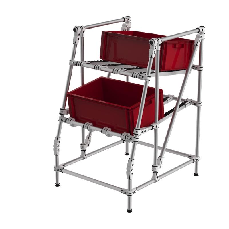 1820652 - Rayonnage picking série Galvastar composé de > 2 échelles livrées assemblées P.400 mm avec pieds plastiques. > 3 tablettes avec dessus métalliques L.600 mm> 2 niveaux avec bacs modulaires. > 6 Séparateurs amovibles pour bacsCaractéristiques techniques > Montage rapide sans boulon