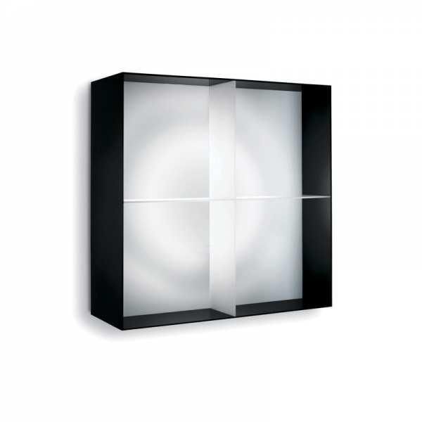 Lumy II Max: Caisse en stratifié Blanc Luxe 31 ou Noir 42. Caisson supérieur en plexiglas blanc éclairé.