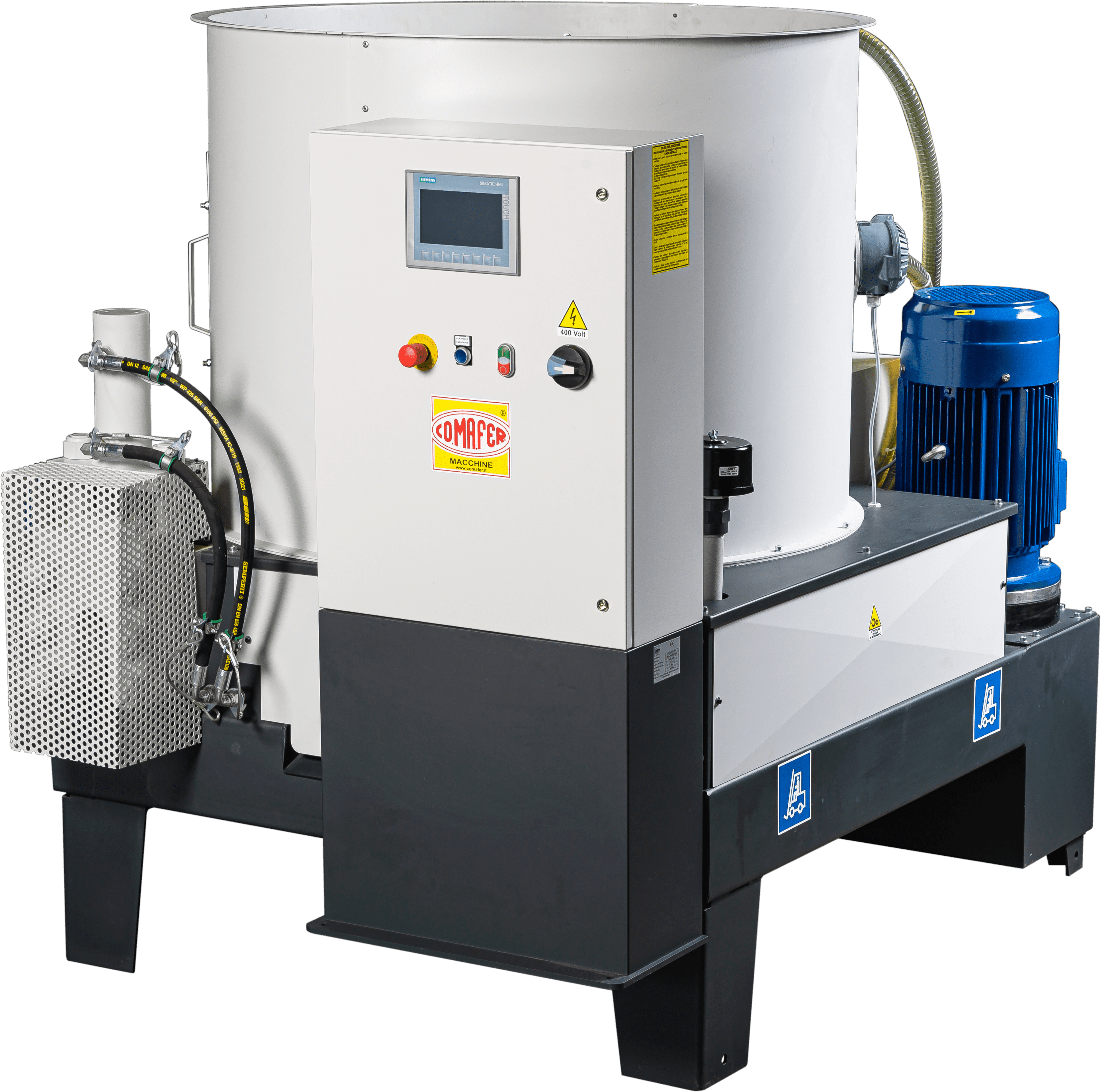 Il s’agit d'une machine oléodynamique destinée à recycler des copeaux de métal (éventuellement à déchiqueter, si nécessaire, en fonction du crible monté sur la déchiqueteuse) issus d’usinages mécaniques en les transformant en briquettes de forme cylindrique aux avantages significatifs. Elle est conçue pour être appliquée aux systèmes d’alimentation à l’intérieur ou à l'extérieur.