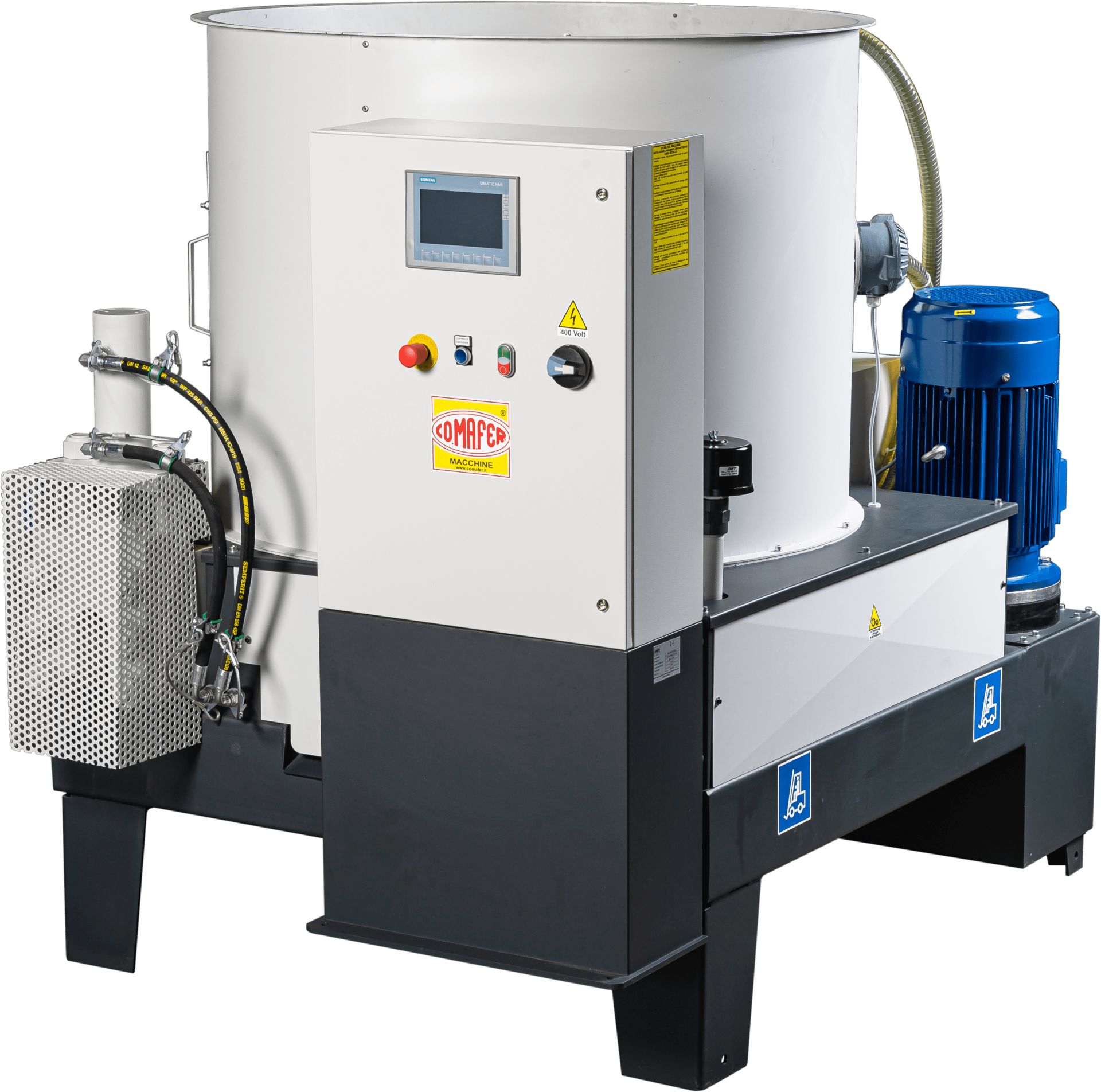 Il s’agit d'une machine oléodynamique destinée à recycler des copeaux de métal (éventuellement à déchiqueter, si nécessaire, en fonction du crible monté sur la déchiqueteuse) issus d’usinages mécaniques en les transformant en briquettes de forme cylindrique aux avantages significatifs. Elle est conçue pour être appliquée aux systèmes d’alimentation à l’intérieur ou à l'extérieur.