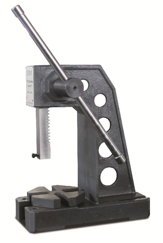 Presse à main à cremaillière. - Points forts : - Construction stable - Châssis en fonte de qualité supérieure - Levier de manoeuvre réglable - Plateau pivotant 4 positions - 4 versions différentes - Convient pour : - Le marquage, le montage et le démontage de roulements, manchons, b