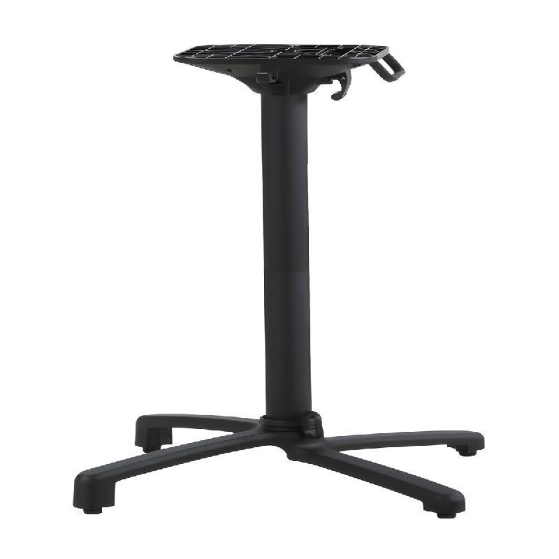 Piètement table de restaurant Ugine Noir en aluminium. Système de rabattage du plateau. Deux tampons réglables en hauteur. Utilisation intérieure et extérieure. Livré démonté. Compatible avec tous nos plateaux de table 60x60cm, 70x70cm et Ø60cm - UGINE PIETEMENT SIMPLE RABATTABLE NOIR - R