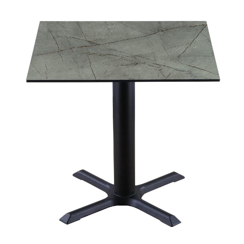 Ensemble pied central Simply fonte acier epoxy, colonne acier, vérins de réglage et plateau HPL 10mm 60x60cm coloris marbre gris, visserie comprise