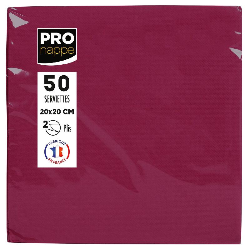 Pronappe - Réf.SV622008I - Carton de 800 Serviettes Cocktail ouate 2 plis - papier micro gaufré - 20 X 20 cm - 16 paquets de 50 serviettes Bordeaux