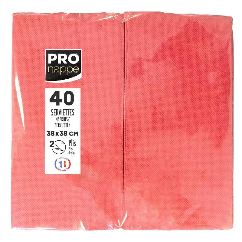 Pronappe - Réf.SV623909I - Carton de 1200 Serviettes ouate 2 plis - papier micro gaufré - pliées 1/8 - 38x38 cm - 30 paquets de 40 serviettes Rouge
