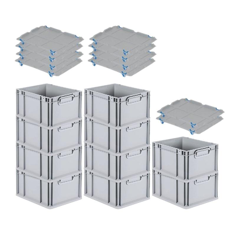 Propriétés des produits: - Bac Euro robuste en Euronorm avec couverture de soutien pour l'industrie et le commerce: l'Bac Euro en gris en polypropylène en plastique stable (PP) est le contenant Euro parfait pour Stockage, transport et stockage - À travers le bord d'auto - empilement et les mur