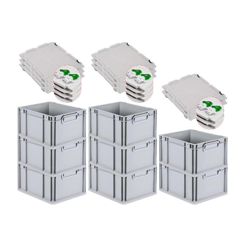 Avec poignées ouvertes ou fermées - Coloris : gris clair - FABRICATION CE - Les bacs Euro Normes, de fabrication robuste - Bacs euro avec couvercle et poignée