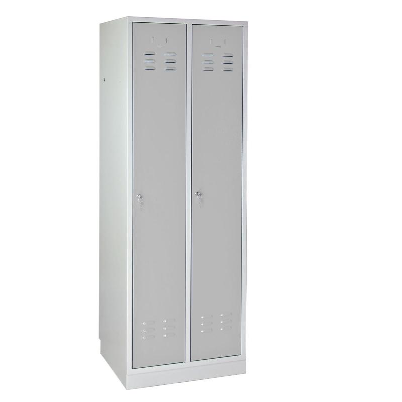 Armoire avec deux casiers verrouillables pour ranger vêtements et objets de valeur dans les vestiaires ou les ateliers. - Nombre d'étagères : 2 - Coloris bleu ciel - RAL 5015 - Coloris gris argent - RAL 7001 - Nombre de portes : 2. - Profondeur : 500 mm - Largeur : 600 mm - Hauteur