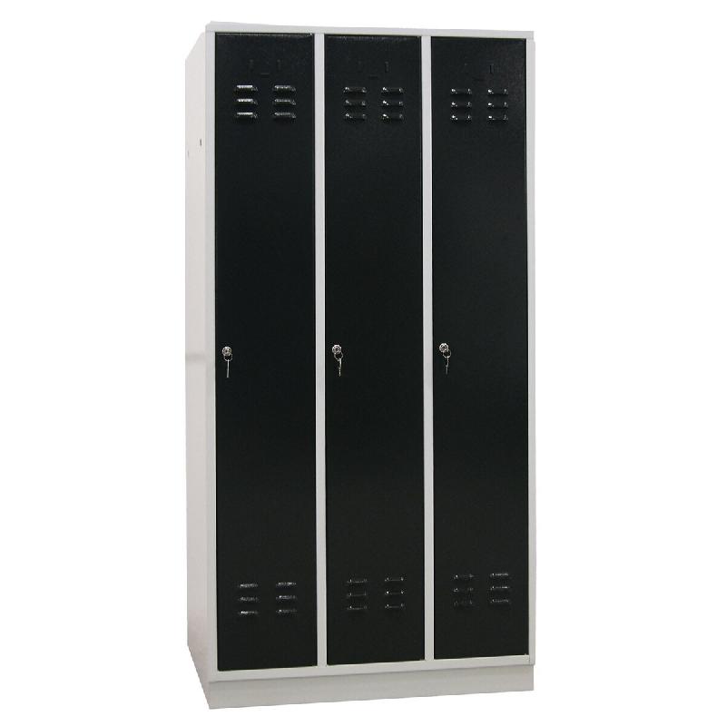 - 3 portes - Fermé individuellement - Cylinder Lock - Précartement pro un pain de chapeau + rail de vêtements avec 2 crochets - Feuille en acier de qualité en poudre - avec des portes de base et renforcées - fentes de ventilation au - dessus et ci - dessous - Ce produit de proregal imp