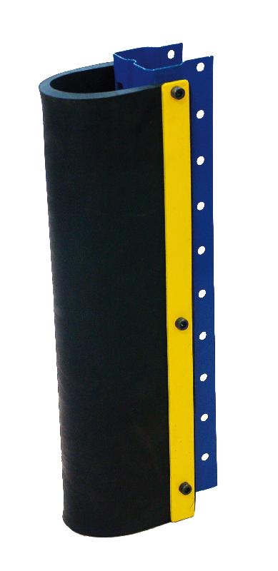 La quille de protection : - Composition : Tube d’acier + absorbeurs circulaires en caoutchouc recyclé - Durable et efficace : grâce à la rotation des absorbeurs qui limite l’impact et dévie la trajectoire du chariot - Applications multiples : - Portes de quais - Passages piétons - RI