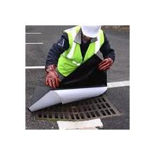Plaque d'obturation pliable à usage unique de couleur bleue. Composée d'enduction de polyuréthane adhésivé sur un support en polyester. Permet de protéger et d'obstruer totalement les bas de portes ou d'avaloirs de caniveaux, pour bloquer tous déversements accidentels de produits chimiques. C