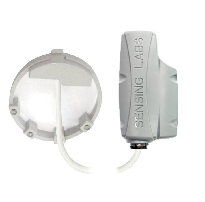 Transmetteur d'impulsions IP68 utilisant le protocole LoRaWAN de la marque Sensing Labs, pré - équipé avec un émetteur d'impulsions IZPI, compatible avec les compteurs d'eau Diehl, couleur blanc. - Marque : DISTRAME