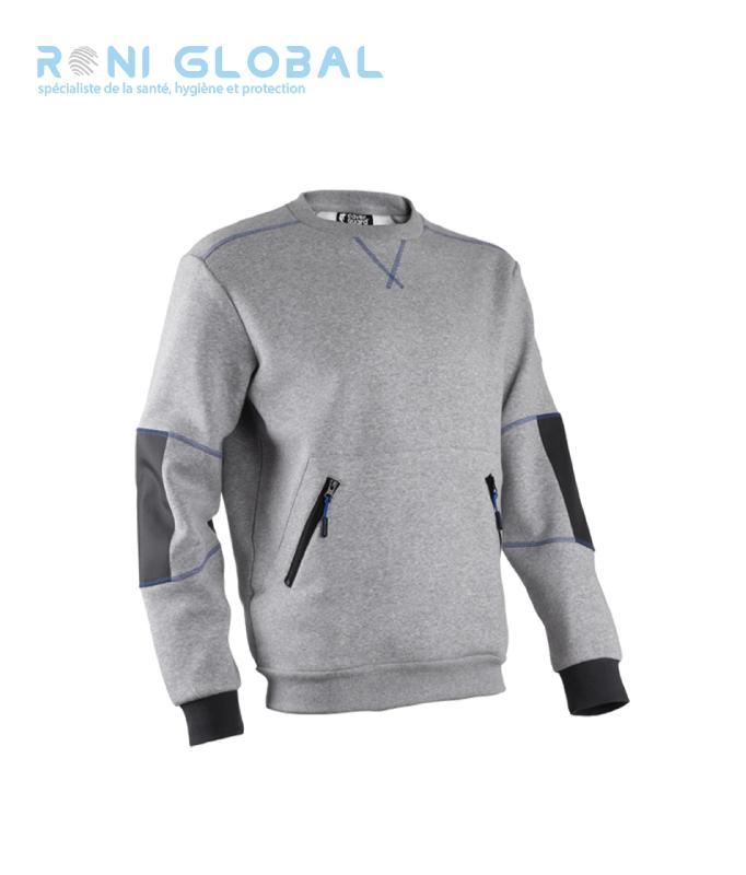 Pull de travail gris en coton et polyester avec coudes renforcés en Oxford, 1 poche - HATO COVERGUARDRéférence : cov - 5HAT550DESCRIPTION : - Molleton : 70% Coton / 30% Polyester - 300g/m2 - Oxford : 300D - Bord - côte : Col rond en bord - côte, poignets et ceinture en bord - côte élasti