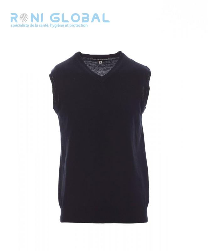 Pull / Gilet de travail marine femme, coupe droite avec col en V, en coton et laine - DESK LADY PAYPER - Référence : pay - 001063 - 0081 - Caractéristiques : - Gilet femme col en V, en point jersey fin - Tricot sans coutures - Bord - côtes fin pour le liseré du col, les emmanchures et les